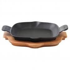 Ploché dno umožňuje použití také na sklokeramických, indukčních, elektrických ale i plynových sporácích. Litinový talíř se vyznačuje robustní konstrukcí a vynikajícími tepelnými vlastnostmi. Jedná se o produkt s nepřilnavým povrchem. Má široké možnosti využití, je skvělý pro přípravu příloh, ale i pro smažení při vysokých teplotách. Můžete na něm také připravovat vajíčka, lívance, popřípadě zapéct pokrmy v troubě. Součástí je také dřevěný podstavec, na kterém můžete pokrmy stylově servírovat na stůl přímo z talíře.