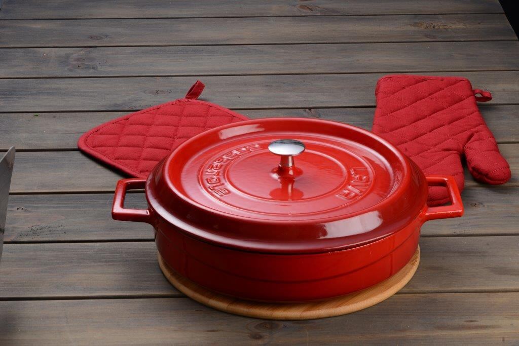 Nízký litinový hrnec s průměrem 28 cm je univerzální pomocník pro pomalé dušení, restování i zapékání v troubě. Díky masivní konstrukci skvěle rozvádí a drží teplo, což umožňuje úsporné vaření při nižších teplotách. Jeho sytě červený smaltovaný povrch se navíc stane ozdobou každé kuchyně i prostřeného stolu.